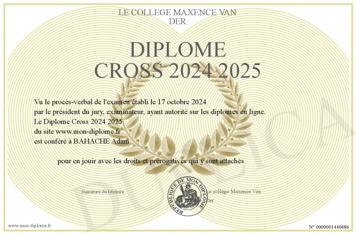 Envoyez par email votre Diplôme Cross 2024 2025 personalisé