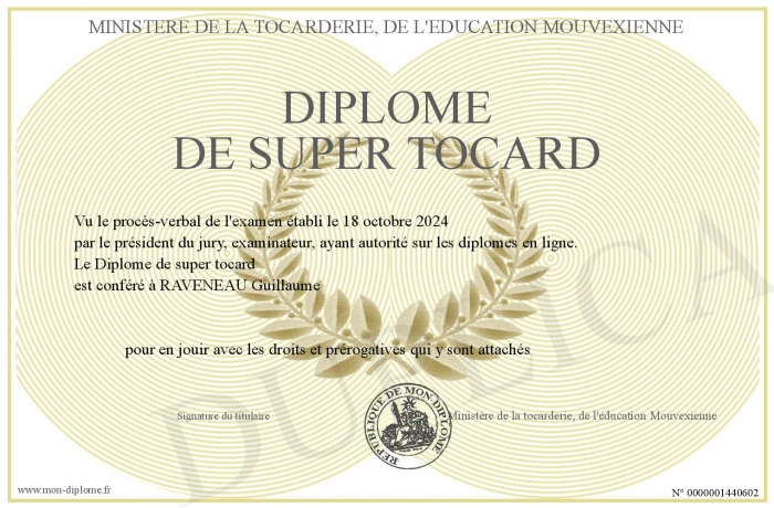 Envoyez par email votre Diplôme de super tocard personalisé