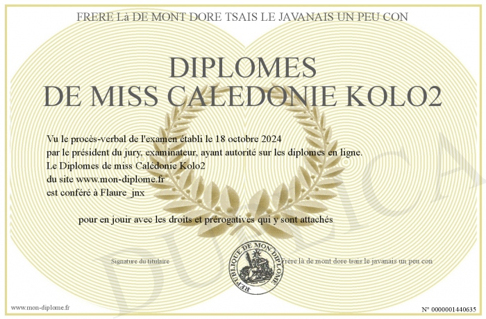 Envoyez par email votre Diplômes de miss Calédonie Kolo2 personalisé