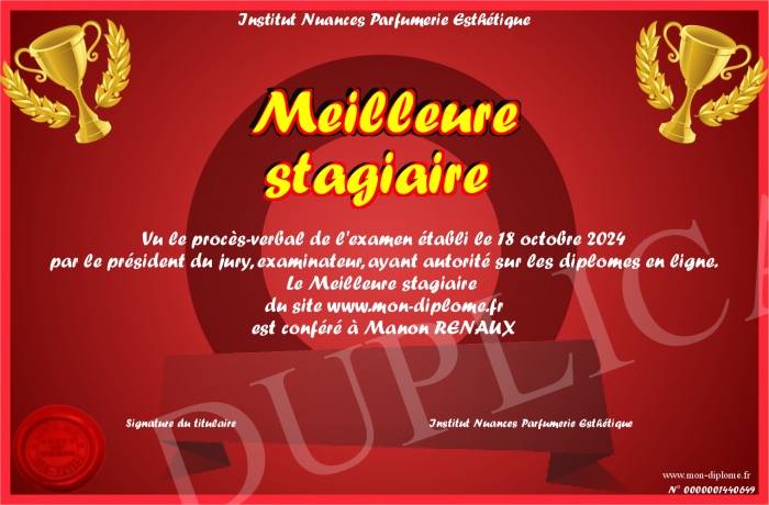 Envoyez par email votre Meilleure stagiaire personalisé