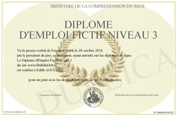 Envoyez par email votre Diplôme d'Emploi Fictif niveau 3 personalisé