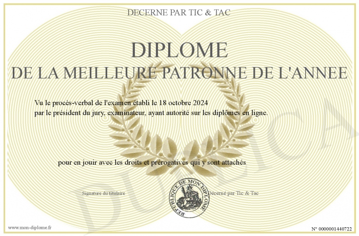 Envoyez par email votre Diplôme de la meilleure Patronne de l'année personalisé