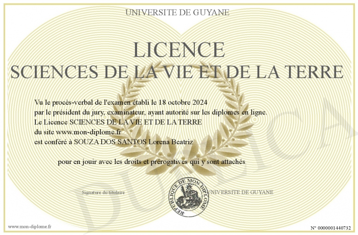 Envoyez par email votre Licence SCIENCES DE LA VIE ET DE LA TERRE personalisé