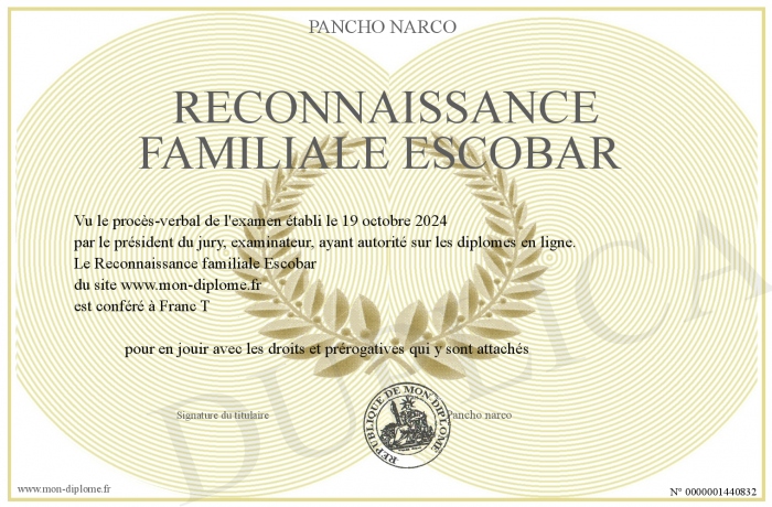 Envoyez par email votre Reconnaissance familiale Escobar personalisé