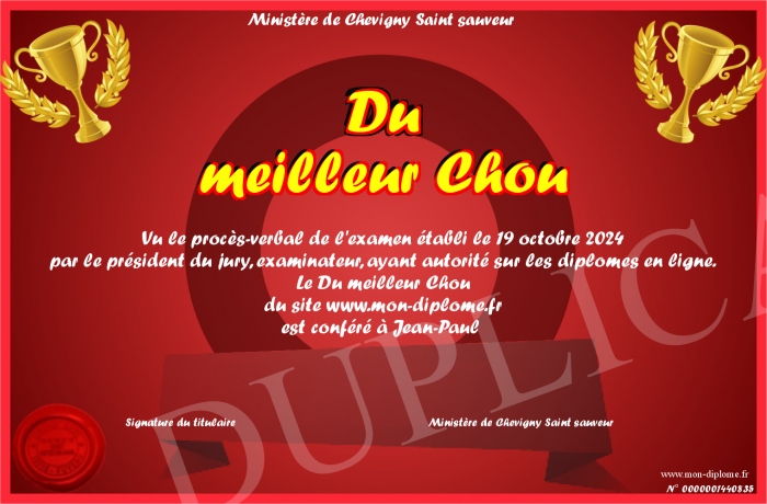 Envoyez par email votre Du meilleur Chou personalisé