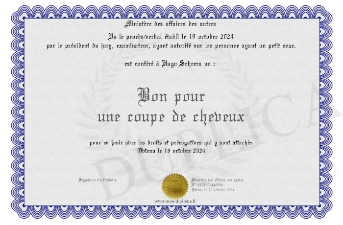 Envoyez par email votre Bon pour une coupe de cheveux personalisé