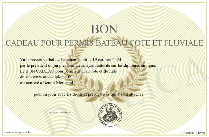 Envoyez par email votre BON CADEAU pour permis Bateau côte et fluviale personalisé