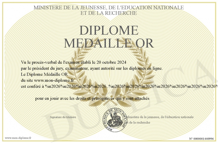 Envoyez par email votre Diplôme Médaille OR personalisé