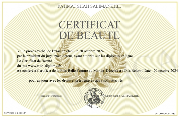 Envoyez par email votre Certificat de Beauté personalisé