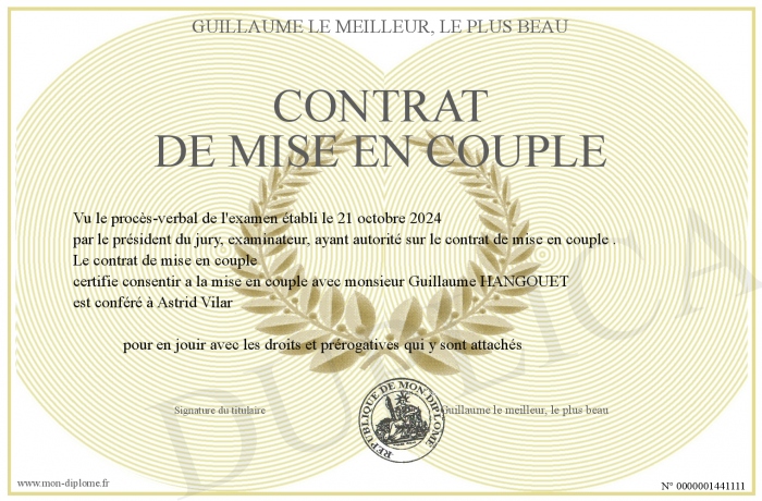 Envoyez par email votre contrat de mise en couple personalisé