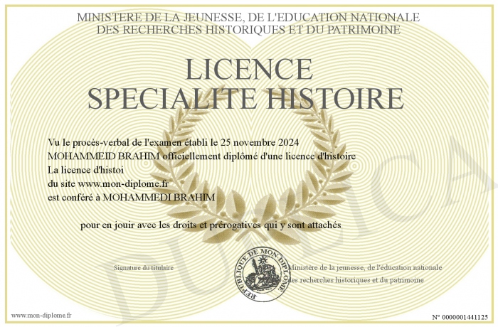 Envoyez par email votre Licence spécialité histoire personalisé