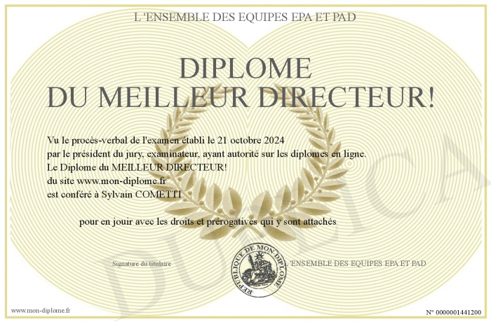 Envoyez par email votre Diplôme du MEILLEUR DIRECTEUR! personalisé