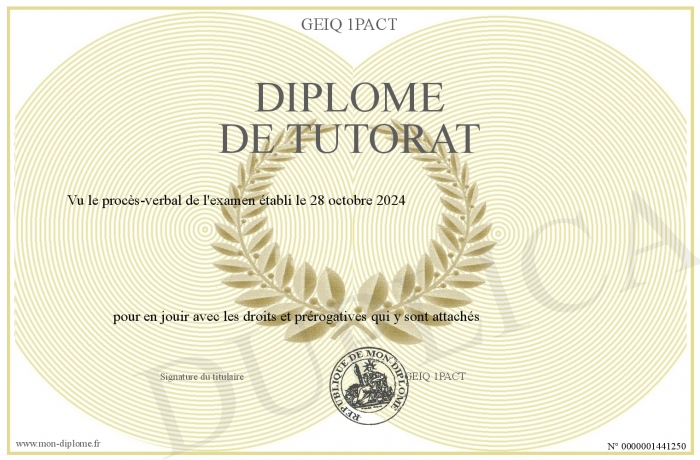 Envoyez par email votre Diplôme de tutorat personalisé