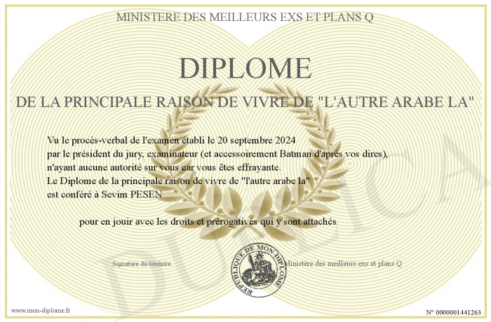 Envoyez par email votre Diplôme de la principale raison de vivre de -l'autre arabe la- personalisé