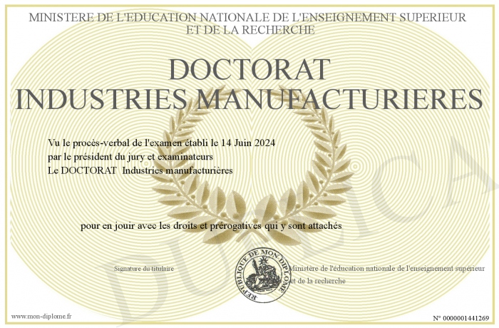 Envoyez par email votre DOCTORAT Industries manufacturières personalisé