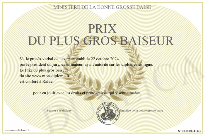 Envoyez par email votre Prix du plus gros baiseur personalisé