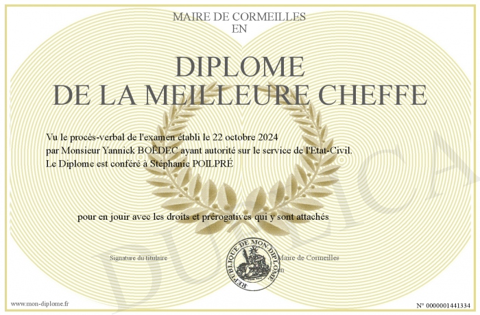 Envoyez par email votre Diplôme de la meilleure cheffe personalisé