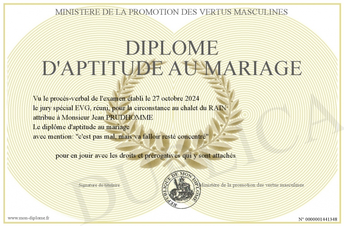 Envoyez par email votre Diplôme d'aptitude au mariage personalisé