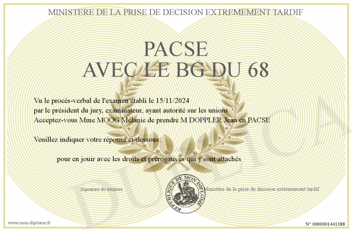 Envoyez par email votre PACSE avec le BG DU 68 personalisé