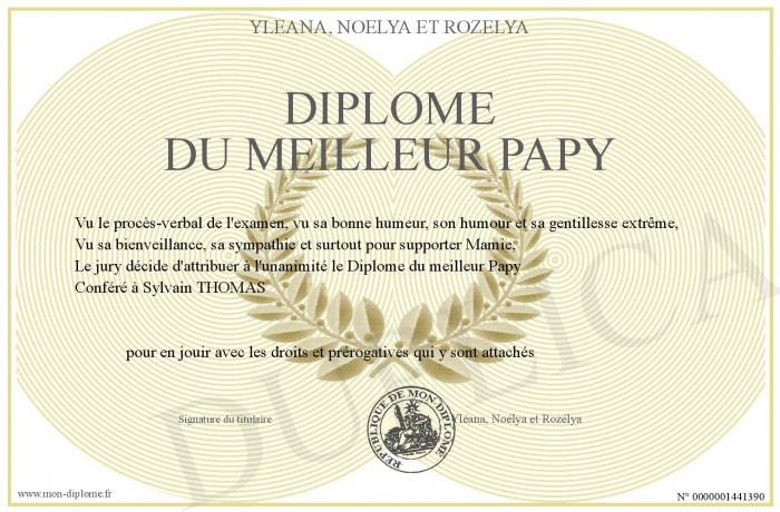 Envoyez par email votre Diplôme du meilleur Papy personalisé