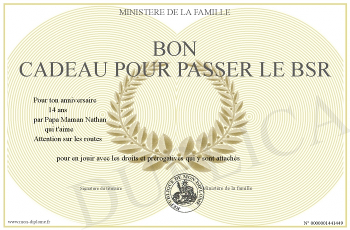 Envoyez par email votre Bon cadeau pour passer le BSR personalisé