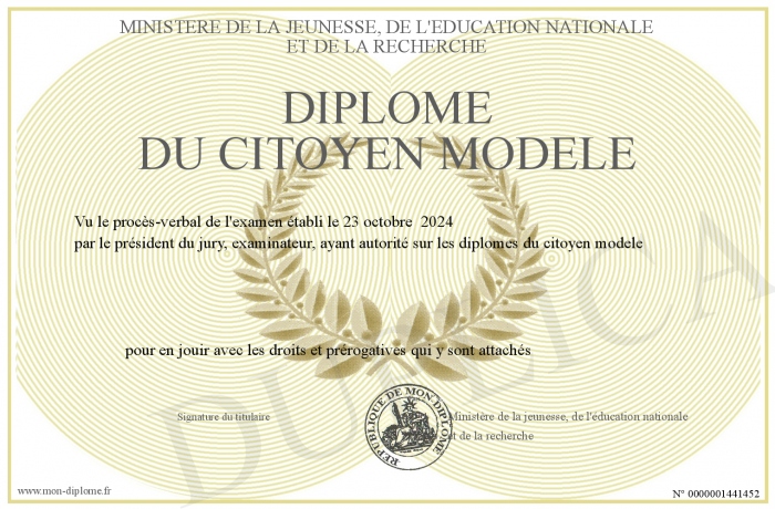 Envoyez par email votre Diplôme du citoyen MODELE personalisé