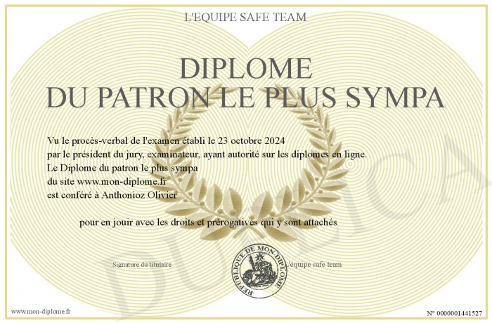 Envoyez par email votre Diplôme du patron le plus sympa personalisé