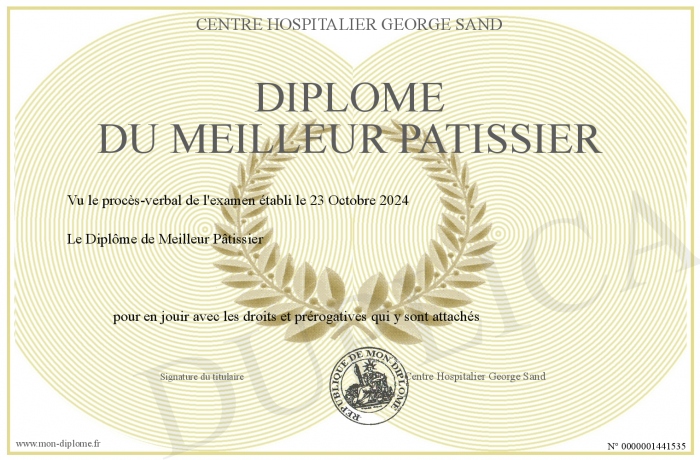 Envoyez par email votre Diplôme du Meilleur Patissier personalisé