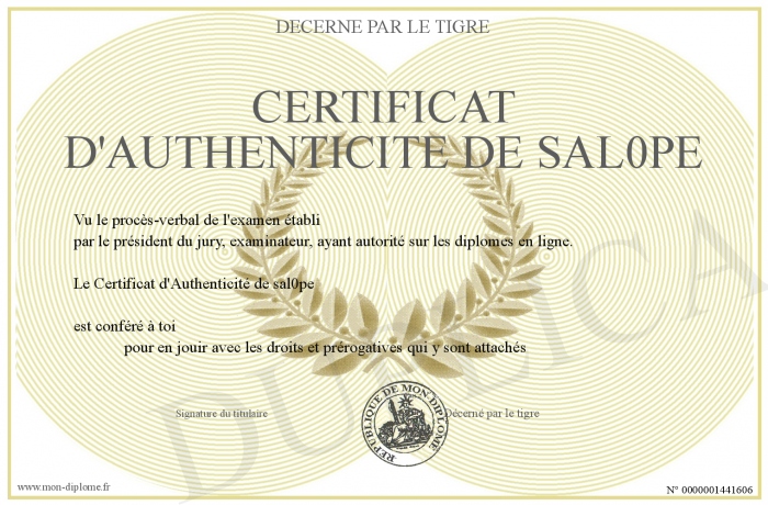 Envoyez par email votre Certificat d'Authenticité de sal0pe personalisé