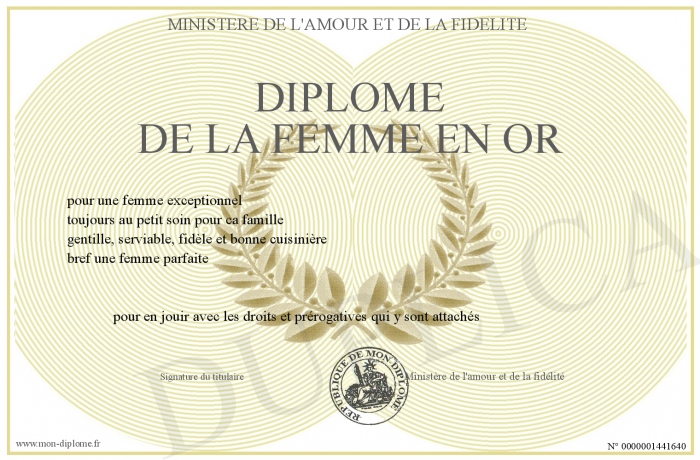 Envoyez par email votre Diplôme de la femme en or personalisé