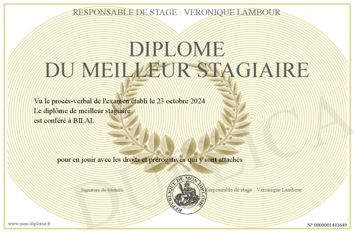 Envoyez par email votre Diplôme du meilleur stagiaire personalisé