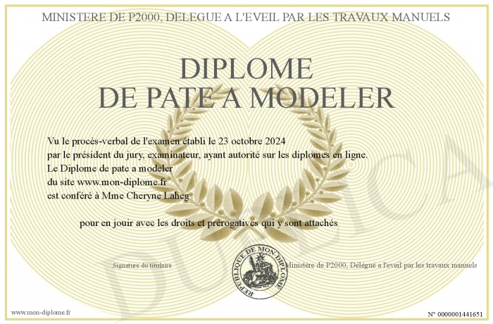 Envoyez par email votre Diplôme de pate a modeler personalisé