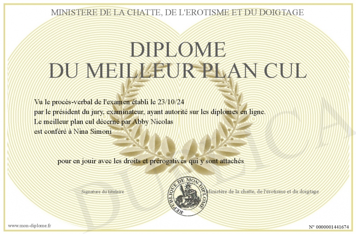 Envoyez par email votre Diplôme du meilleur plan cul personalisé