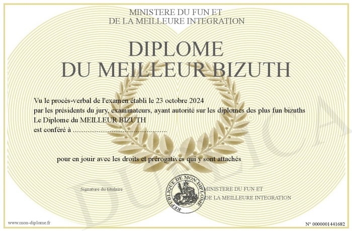 Envoyez par email votre Diplôme du MEILLEUR BIZUTH personalisé