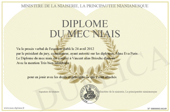 Envoyez par email votre Diplôme du mec niais personalisé