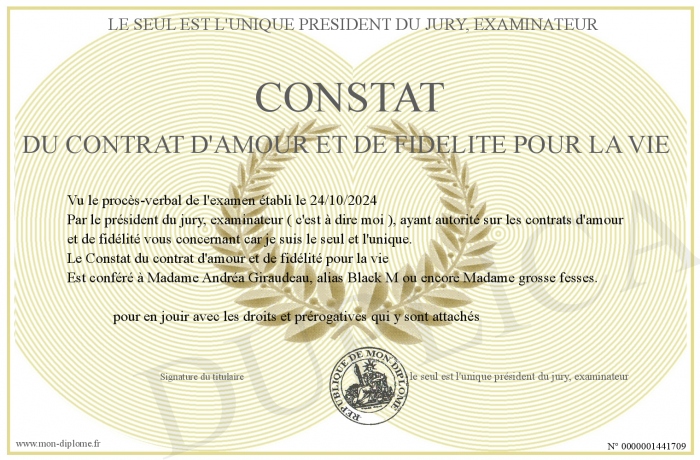 Envoyez par email votre Constat du contrat d'amour et de fidélité pour la vie personalisé