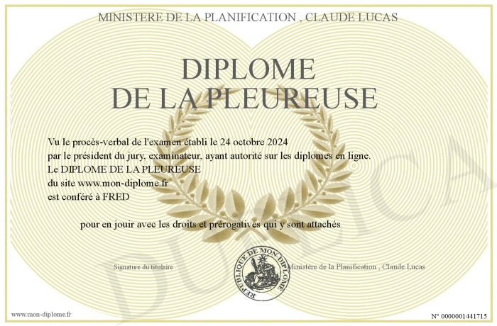 Envoyez par email votre DIPLOME DE LA PLEUREUSE personalisé