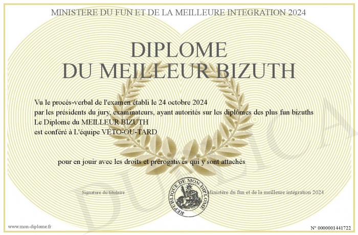 Envoyez par email votre Diplôme du MEILLEUR BIZUTH personalisé