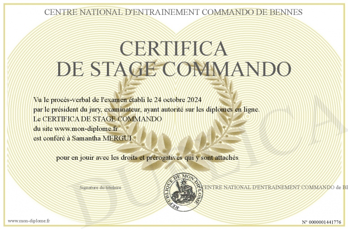 Envoyez par email votre CERTIFICA DE STAGE COMMANDO personalisé
