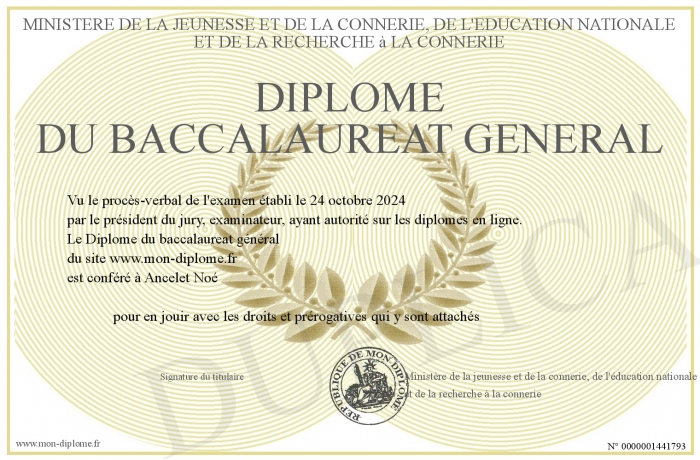 Envoyez par email votre Diplôme du baccalaureat général personalisé