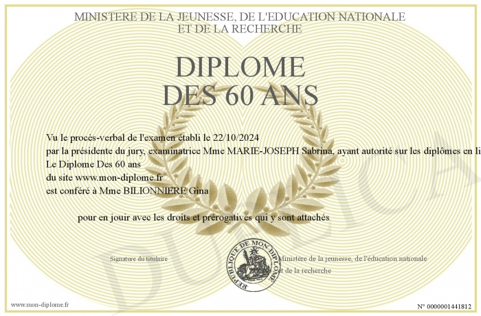 Envoyez par email votre Diplôme Des 60 ans personalisé