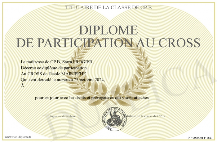 Envoyez par email votre Diplôme de Participation au CROSS personalisé