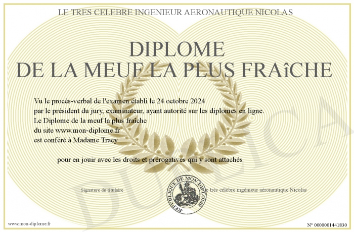 Envoyez par email votre Diplôme de la meuf la plus fraîche personalisé