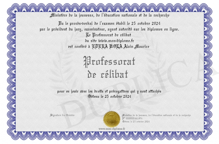 Envoyez par email votre Professorat de célibat personalisé