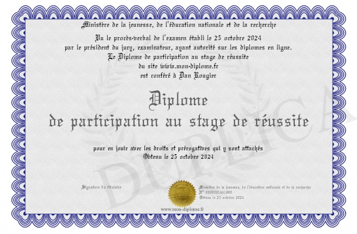 Envoyez par email votre Diplôme de participation au stage de réussite personalisé