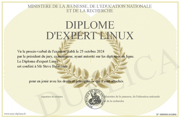 Envoyez par email votre Diplôme d'expert Linux personalisé