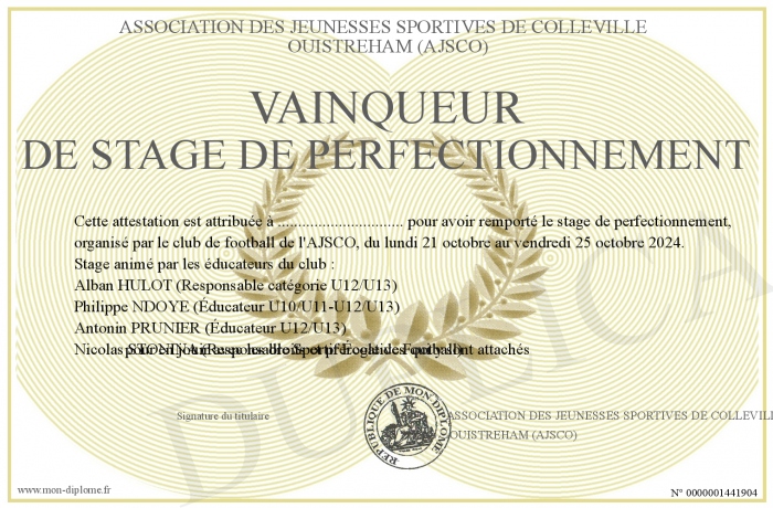 Envoyez par email votre VAINQUEUR DE STAGE DE PERFECTIONNEMENT personalisé