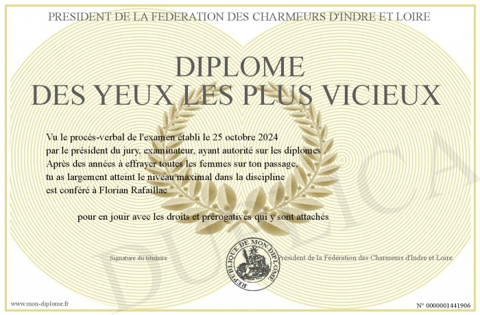 Envoyez par email votre Diplôme des Yeux les plus vicieux personalisé