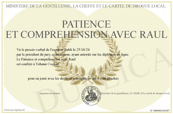 Envoyez par email votre Patience et compréhension avec Raul personalisé