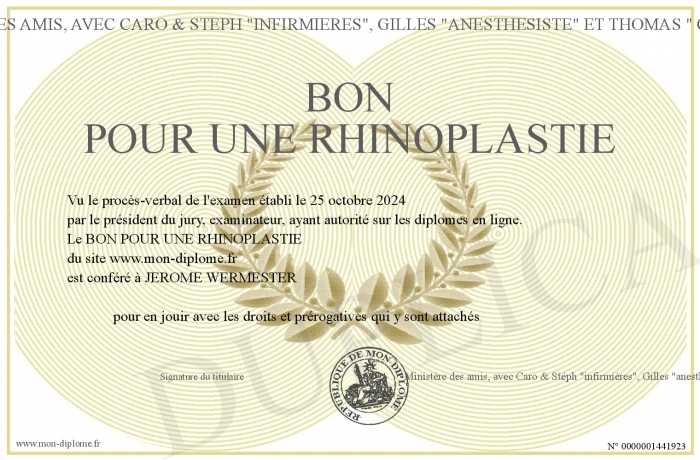 Envoyez par email votre BON POUR UNE RHINOPLASTIE personalisé